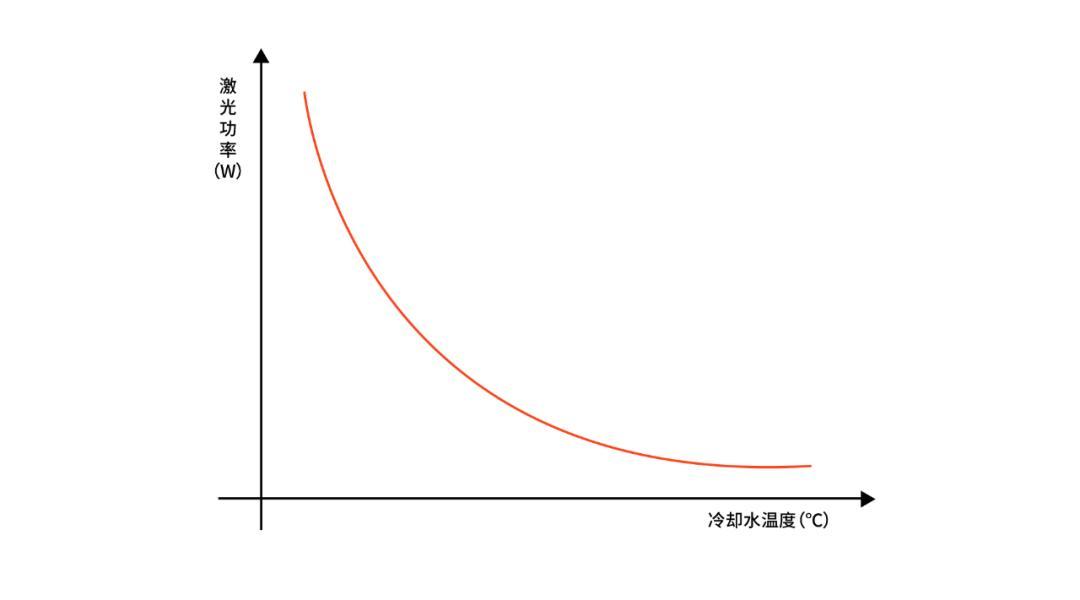 以纯净水为例子,假设冷却液的温度上升,那么它和放电区的温差将会减小,散热效果下降,最终影响激光功率。据部分实验数据表明,冷却液(纯净水)温度每升高约1℃,激光功率将降低约0.5%~1%。