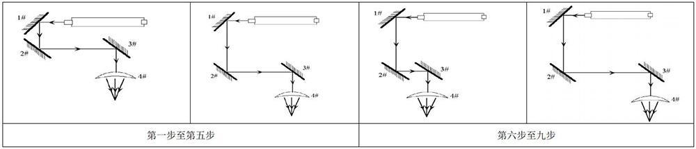 第八步:如果 3#反射镜胶纸上的两个标记不重合,调整 2#反射镜,使这两个标记中心重合。